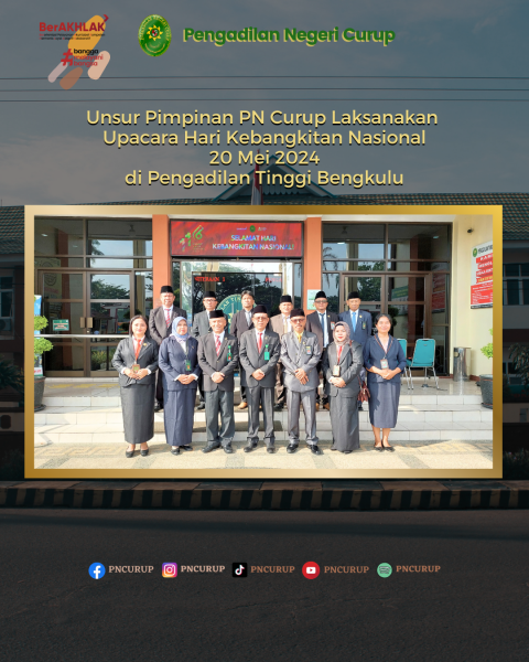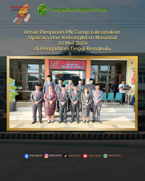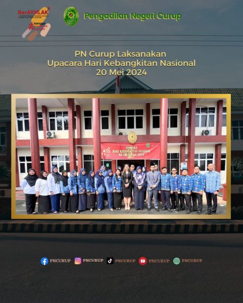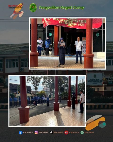 PNCurup-Senin, 20.05.2024, Bertempat di halaman kantor Pengadilan Negeri Curup Kelas IB, PN Curup telah melaksanakan Upacara hari Kebangkitan Nasional 20 Mei 2024 yang ke 116. Upacara di pimpin oleh Ibu Dini Anggraini, S.H selaku Plh. Pimpinan Pengadilan Negeri Curup. Upacara ini dilaksanakan dalam rangka memperingati Hari Kebangkitan Nasional yang biasa diadakan tanggal 20 Mei setiap tahunnya.