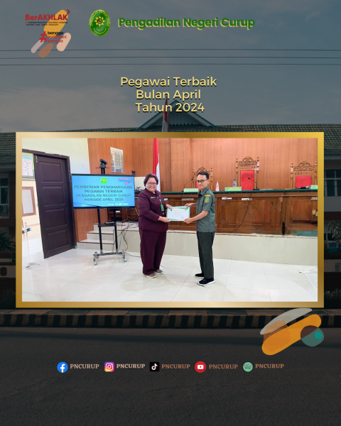 Pada akhir rapat, disampaikan untuk Pegawai Terbaik Periode Bulan April Tahun 2024 yakni Bapak Rachmad Hidayat, S.Kom., M.CIO. (Humas PNCurup)