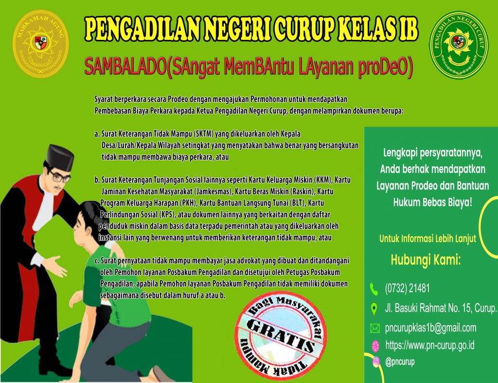 Berikut ini informasi Layanan Hukum Pembebasan Biaya Perkara (Prodeo) pada Pengadilan Negeri Curup berdasarkan :
